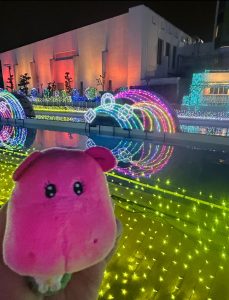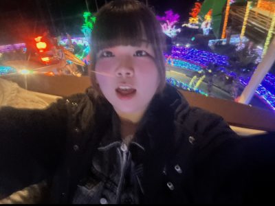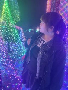 スマホ持ち込みOKなアトラクションで、キラキラしたイルミネーションを背景に自撮りをしてみました📸